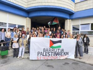 Lema: “Hezkuntza komunitatea Palestinarekin! Genozidioa STOP!”