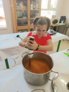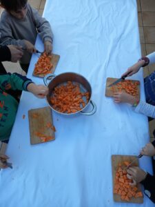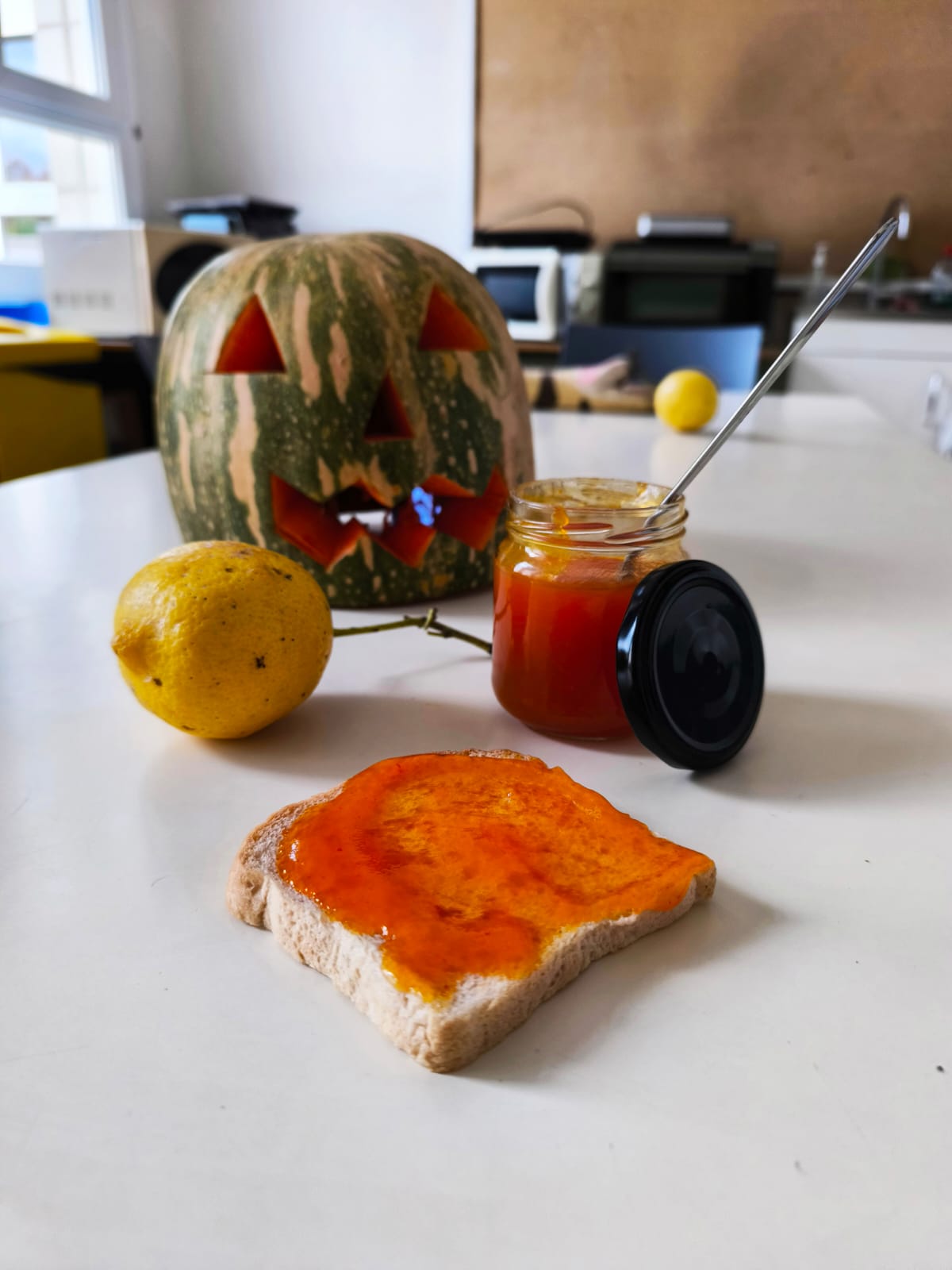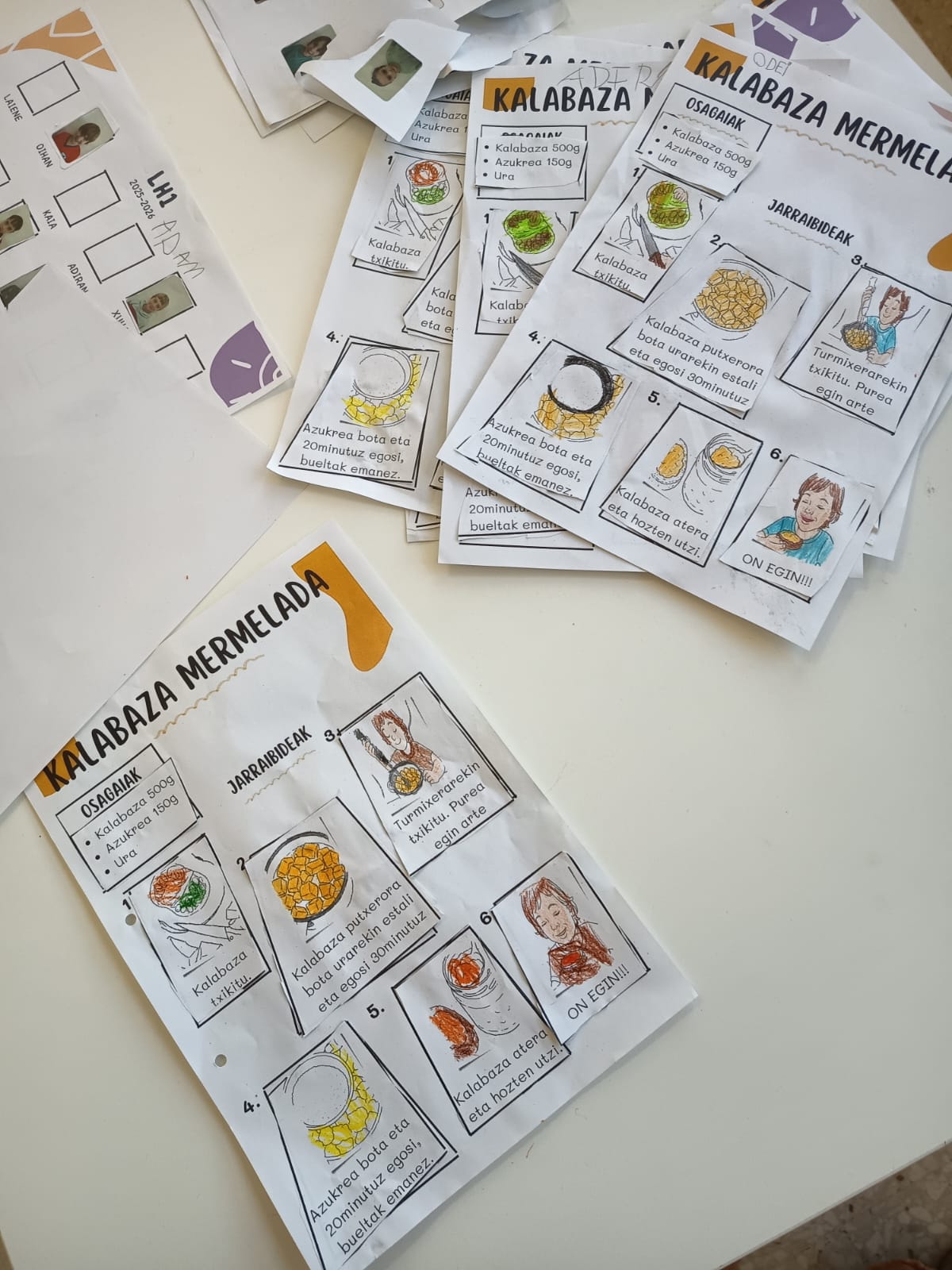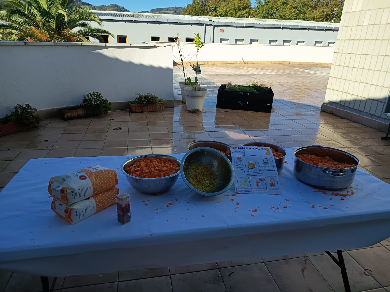 Beste ikasle batzuk, urratsez urrats, kalabaza mermelada egin dute. Lehenengo errezeta nola egiten den landu dute. Ondoren, errezetaren pausoak jarraituz txikienek ateratako kalabaza mamia, mermelada bihurtu dute. Hau dastatu ondoren, bakoitzak, bere ontzitxoan mermeladaren lagin bat etxera eramateko prestatu dute, etxekoek ere beraien errezetaz goza dezaten.